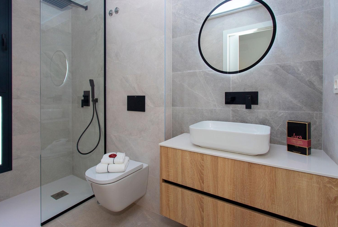 New Build Semi Detached Villas in Sucina: last unit Fully Equipped and Ready to Move In Exceptional Opportunity in Sucina This is your chance to secure the last available unit in this modern new build development, previously used as the show home. It is key ready and delivered fully equipped with furniture, appliances, interior and exterior lighting, air conditioning, electric car charger and an outdoor summer kitchen with fridge. A unique turnkey opportunity in one of the most charming towns of the Costa Calida. Contemporary Design Focused on Light and Comfort These semi detached villas stand out for their elegant and pure contemporary design, with layouts created to maximize natural Mediterranean light. The main living areas feature an open plan concept where the kitchen and living room merge seamlessly, connected by a stylish central island. This space flows directly to the porch and the pool terrace, creating a harmonious indoor outdoor lifestyle ideal for sunny days. Single Level Living With Private Pool and Solarium The villa includes 3 bedrooms and 2 bathrooms on one floor, plus a convenient exterior guest toilet for the pool area. The master bedroom is exceptionally bright and offers an en suite bathroom, walk in wardrobe and direct access to the main terrace. The property also boasts an impressive 82 m2 solarium, perfect for sunbathing or creating an outdoor lounge. Built on a 211 m2 plot, the villa includes off road parking within the plot. Prime Location Close to All Services Located just a short walk from the center of Sucina, the villa provides immediate access to daily amenities such as shops, restaurants and supermarkets. Sucina is a traditional Spanish town that has grown in popularity in recent years due to its relaxed lifestyle, authentic atmosphere and proximity to the coast. The beautiful beaches of the Costa Calida and the Mar Menor are only a few minutes away. Distances to Key Points of Interest Murcia Airport 25 km Alicante Airport 75 km Beaches of the Mar Menor 15 km Nearest Golf Course 4 km Port of San Pedro del Pinatar 20 km Live a High Quality Mediterranean Lifestyle Built with excellent materials and designed for comfort, these villas offer an exceptional opportunity to enjoy open spaces, natural light and pure air all year round. Contact us today to arrange a visit and secure this exclusive key ready home in Sucina. 1049