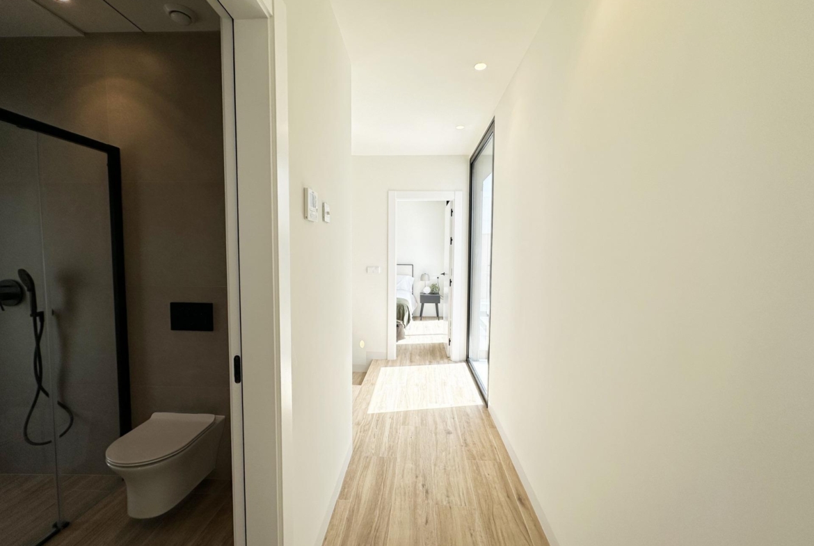 Exclusive New Build Villas 300 m from the Beach in Torre de la Horadada Luxury Coastal Living in a Prime Location Discover this exclusive new build villa project in Torre de la Horadada, one of the most sought after coastal towns in the south of Alicante. Located just 300 m from the Mediterranean Sea and within walking distance of shops, restaurants and daily services, these villas offer an exceptional opportunity to enjoy the Costa Blanca lifestyle. Torre de la Horadada is known for its relaxed atmosphere, beautiful promenade and fine sandy beaches, making it ideal for both permanent living and holiday use. Last Key Ready Villa Fully Equipped This boutique development consists of only four independent villas, with the last unit available key ready and fully furnished. The villa is delivered complete with furniture, appliances and ducted air conditioning, allowing you to move in immediately and start enjoying your new home by the sea. Set on a private plot of approximately 207 m2, the villa offers around 130 m2 of built space distributed over ground floor, first floor and a private rooftop solarium. Modern Design with Private Pool and Solarium The villa features a contemporary design with open and bright spaces. Inside, you will find three spacious bedrooms and three bathrooms, a living dining area with an open plan kitchen, and direct access to the garden and private swimming pool. The rooftop solarium provides an ideal space to relax, sunbathe or enjoy open views, creating a perfect outdoor living area all year round. High Quality Specifications and Comfort The property is built to high standards and includes a reinforced entrance door, motorised shutters in the bedrooms, a private swimming pool, and a basic home automation system for electronic controls. Ducted air conditioning is fully installed, ensuring comfort in all seasons. A private parking space within the plot adds convenience and security. Torre de la Horadada and Surroundings Torre de la Horadada offers a charming coastal environment with a long seafront promenade, marinas and a wide range of restaurants, bars and local shops. The nearby beaches of Torre de la Horadada and Mil Palmeras are among the best in the area, ideal for swimming, water sports, snorkelling and diving. The area is well connected and surrounded by golf courses, shopping centres and leisure options. Distances to Main Points of Interest Beach: 0.3 km Plaza Nueva shopping area: 0.2 km Lo Romero Golf: 7 km Marina of Torre de la Horadada: 1.5 km Murcia Corvera Airport: 45 km Alicante Airport: 50 km Your New Home by the Mediterranean Awaits This key ready villa in Torre de la Horadada is a unique opportunity to own a modern home just steps from the beach. Contact us today to arrange a viewing and secure this exceptional new build villa on the Costa Blanca. 1049