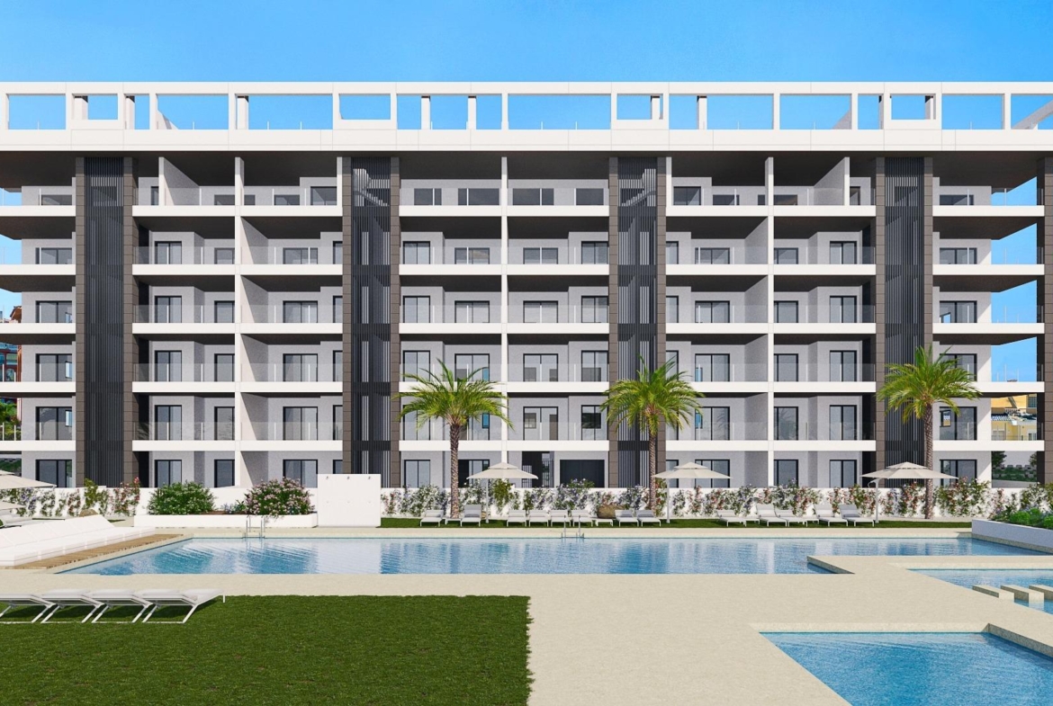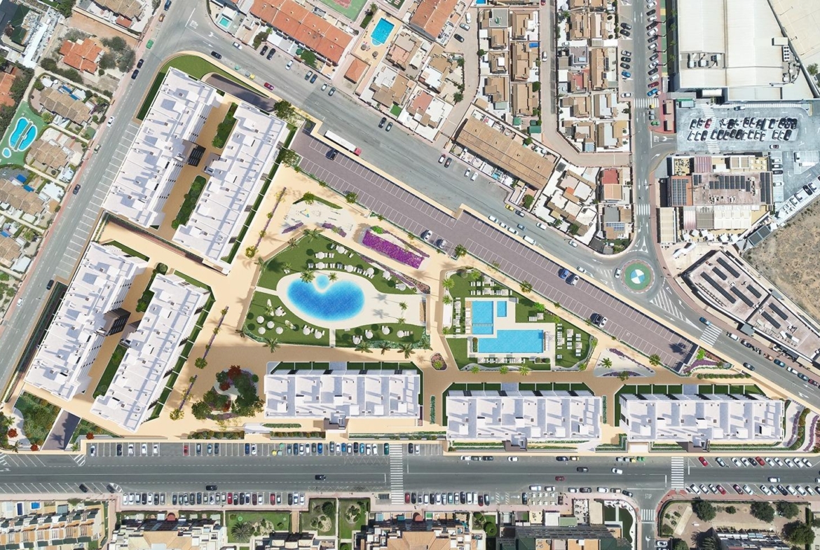 NEW BUILD GATED URBANIZATION IN TORREVIEJA ONLY 700M FROM THE BEACH New Build residential complex of 362 apartments with large community areas in Torrevieja. You can choose between luxury 2 bedrooms and 2 bathrooms apartments , 3 bedrooms and 2 bathrooms penthouses with private solarium and 2 bedroom, 2 bathroom ground floor apartments with private garden. -Modern designs and quality finishes and materials -Almost all apartments will have sea views -All apartments comes with large front terraces facing the community areas -Communal areas with two swimming pools for adults, children’s pool, children’s area, gym, sports area and spa, bicycle parking and vehicle parking area -700 meters to La Mata Beach, 10 minutes walking -In front of Torremarina Shopping Center with Mercadona, restaurants, cafes and other shops Torrevieja is a Spanish town in the province of Alicante, on the Costa Blanca. It is known for its typically Mediterranean climate and coastline. It has boardwalks with resorts along its sandy beaches. The small Museum of the Sea and Salt houses exhibitions on the fishing and salt history of the city. In the interior, the Lagunas de La Mata-Torrevieja Natural Park has trails and two salty lagoons, one pink and the other green. Alicante airport located 40 minutes away and Murcia airport about 1 hour away. 1049