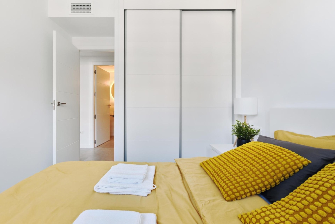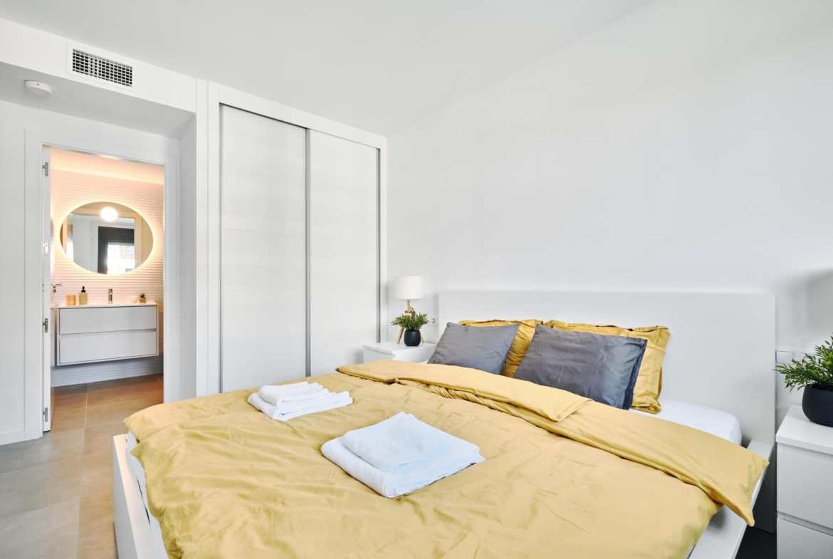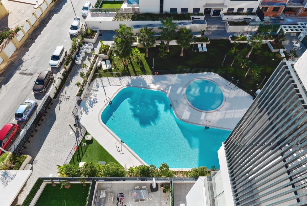 Discover the essence of Mediterranean living in this elegant south east facing, three-bedroom apartment, located in one of the most exclusive and contemporary complexes in Dehesa de Campoamor. Every corner of this home has been designed to offer comfort, light, and sophistication, creating a perfect space for year-round living or enjoying a seaside getaway. The apartment features three spacious bedrooms, all bathed in natural light and equipped with designer built-in wardrobes. The two bathrooms boast high-quality finishes, with walk-in showers and modern details that add style and functionality. The open-plan living area integrates the kitchen, dining room, and living room into a harmonious and welcoming environment, ideal for sharing moments with family and friends. From here, you can access a large southeast-facing terrace, a perfect space to enjoy the morning sun, have breakfast al fresco, or relax while watching the sunrise over the Mediterranean. The residential complex offers an exceptional range of amenities to enjoy year-round: • Two outdoor swimming pools surrounded by landscaped gardens. • A fully equipped gym. • A heated indoor pool and jacuzzi for relaxation at any time of year. • A communal rooftop terrace with a shared kitchen, social area, and stunning panoramic sea views. This property represents a unique opportunity for those seeking to combine elegance, comfort, and Mediterranean charm in an unbeatable setting. Experience Campoamor: where modern design meets the serenity of the sea.