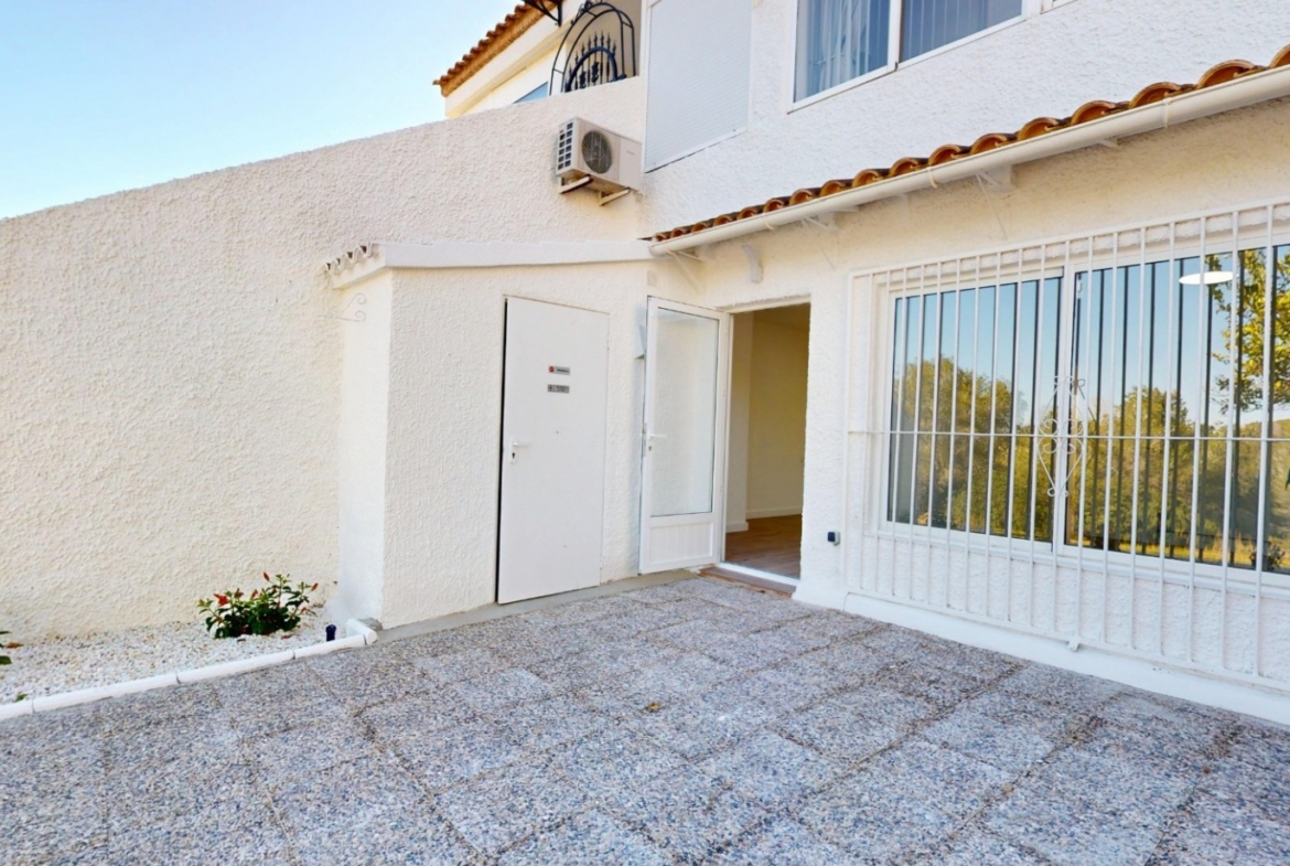 One of the standout features of this property is its exceptional outdoor space. At the front, you will find a private covered porch with awning, perfect for relaxing in the shade, while at the rear there is a large private terrace, ideal for outdoor dining, entertaining, or enjoying the Mediterranean lifestyle all year round. The property also includes a practical exterior storage cupboard.
