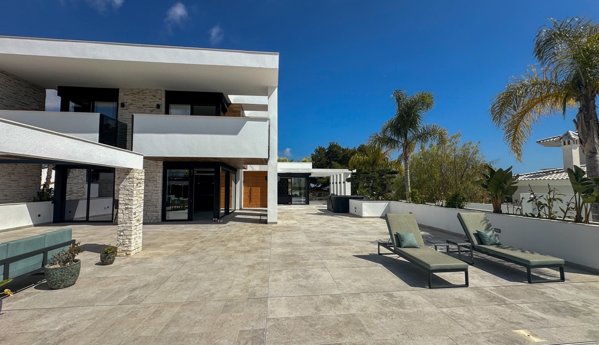 This villa is a triumph of modern engineering and sustainable luxury: underfloor heating throughout, a heated infinity pool, solar panels, zoned central air-conditioning, and a private elevator connecting all floors ensure ultimate comfort and convenience. Expansive outdoor terraces, an outdoor kitchen, and landscaped gardens provide the perfect backdrop for grand entertaining or serene relaxation under the Mediterranean sun.