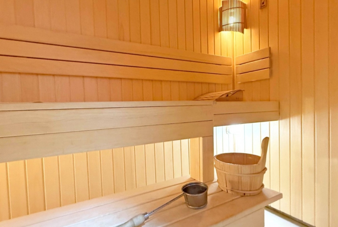 The villa boasts a private, heated pool, perfect for enjoying the sunny Mediterranean climate in ultimate privacy. For those seeking wellness and relaxation, the property includes a sauna and underfloor heating throughout, ensuring comfort in every season.