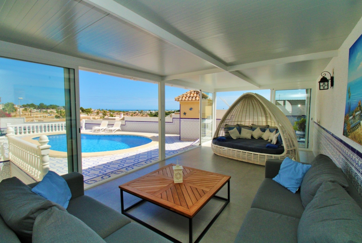 This exceptional detached villa is set on a generous private plot within El Presidente, Orihuela Costa, and stands out for its stunning, unobstructed sea views from all aspects of the property, including the main living areas, terraces, and pool area.