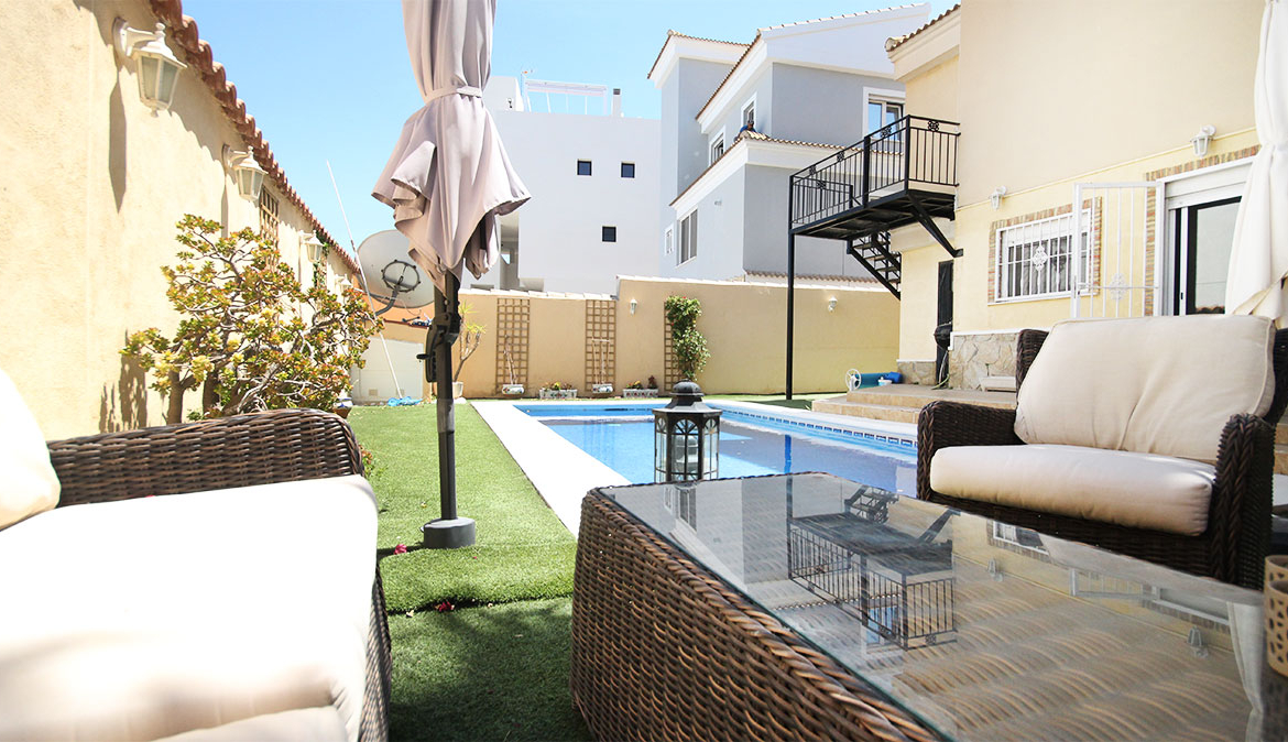 This 4 bedroomed villa in El Galan with Private pool is located on a quiet street in this well established neighbourhood.